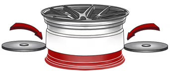 Flow forming is an advanced wheel manufacturing technique that starts with a low-pressure cast aluminum wheel blank. The blank is heated to a specific temperature, then mounted on a precision spin-forming machine. As it rotates at high speed, hydraulic rollers apply extreme pressure to the outer barrel, gradually elongating and compressing the material into its final shape. This controlled deformation process realigns and strengthens the aluminum’s grain structure, much like forging, especially in the barrel where strength and impact resistance are most critical.